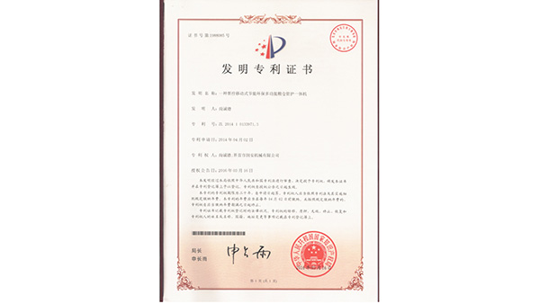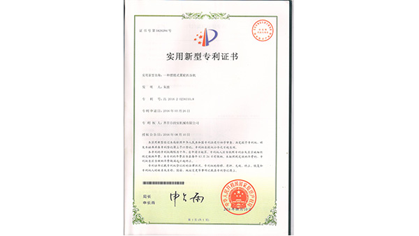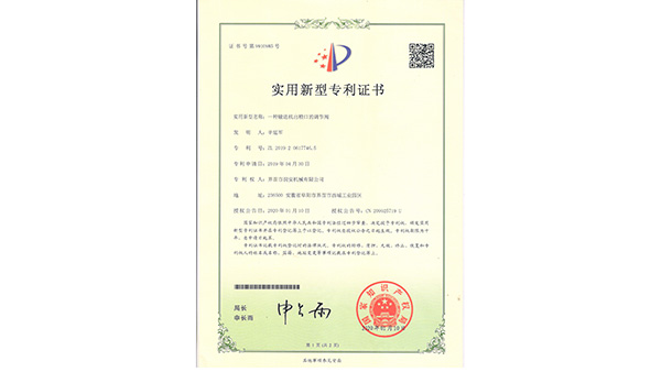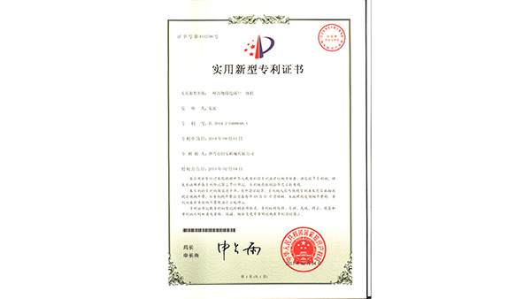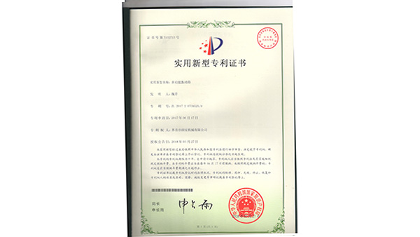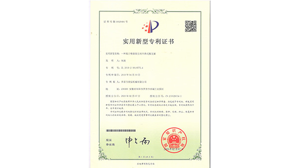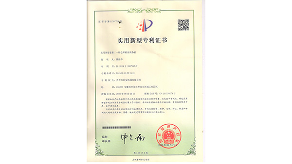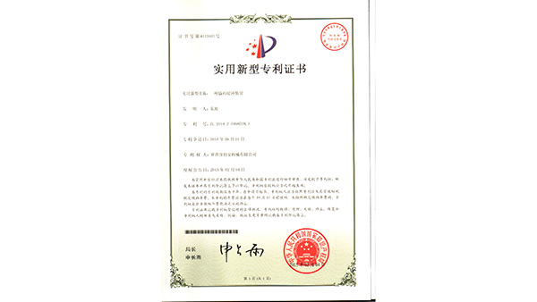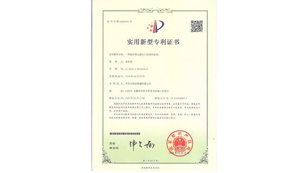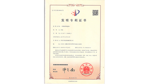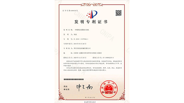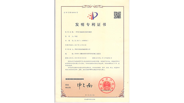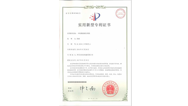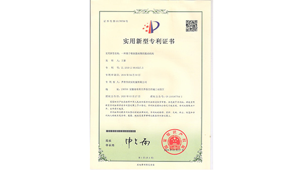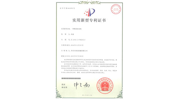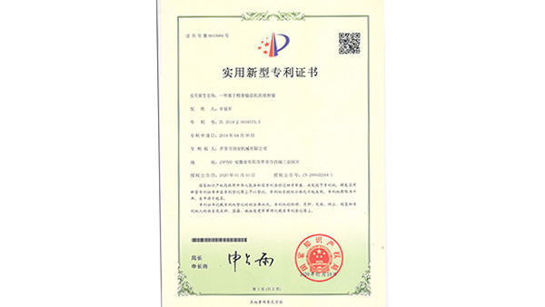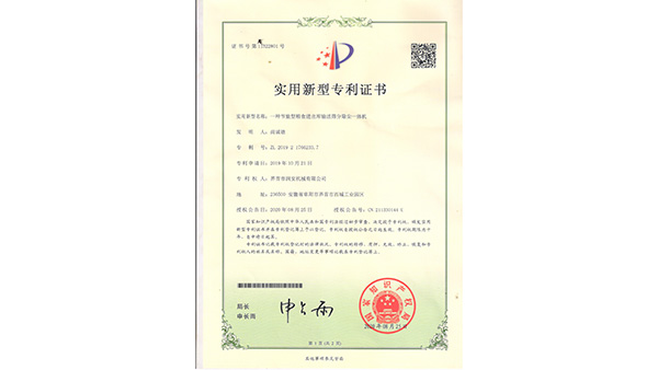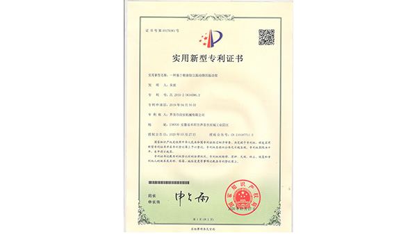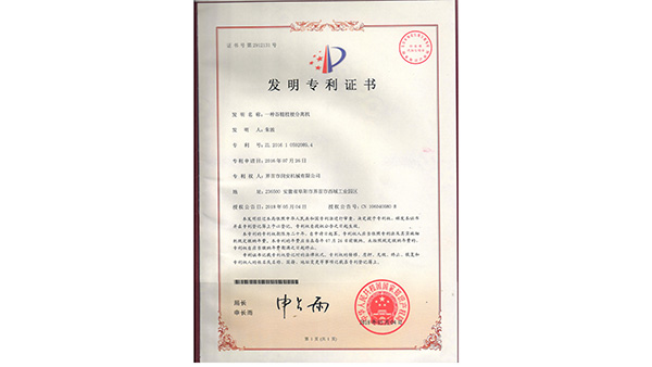 專利證書公司已通過了ISO9001質(zhì)量管理認(rèn)證、ISO14001環(huán)境管理體系認(rèn)證和ISO45001職業(yè)健康安全管理體系認(rèn)證。為中國(guó)儲(chǔ)備糧管理總公司糧機(jī)設(shè)備的A級(jí)供應(yīng)商、安徽省高新技術(shù)企業(yè)、擁有阜陽(yáng)市企業(yè)技術(shù)中心。