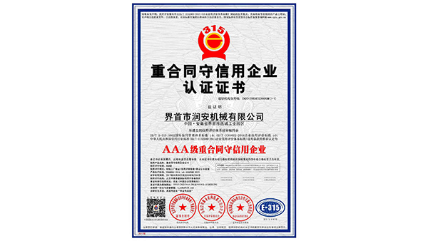 重合同守信用單位公司已通過了ISO9001質(zhì)量管理認(rèn)證、ISO14001環(huán)境管理體系認(rèn)證和ISO45001職業(yè)健康安全管理體系認(rèn)證。為中國(guó)儲(chǔ)備糧管理總公司糧機(jī)設(shè)備的A級(jí)供應(yīng)商、安徽省高新技術(shù)企業(yè)、擁有阜陽(yáng)市企業(yè)技術(shù)中心。