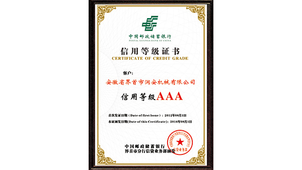 信用等級(jí)證書公司已通過了ISO9001質(zhì)量管理認(rèn)證、ISO14001環(huán)境管理體系認(rèn)證和ISO45001職業(yè)健康安全管理體系認(rèn)證。為中國(guó)儲(chǔ)備糧管理總公司糧機(jī)設(shè)備的A級(jí)供應(yīng)商、安徽省高新技術(shù)企業(yè)、擁有阜陽(yáng)市企業(yè)技術(shù)中心。