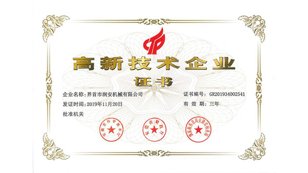 高新技術(shù)企業(yè)證書公司已通過了ISO9001質(zhì)量管理認(rèn)證、ISO14001環(huán)境管理體系認(rèn)證和ISO45001職業(yè)健康安全管理體系認(rèn)證。為中國(guó)儲(chǔ)備糧管理總公司糧機(jī)設(shè)備的A級(jí)供應(yīng)商、安徽省高新技術(shù)企業(yè)、擁有阜陽(yáng)市企業(yè)技術(shù)中心。