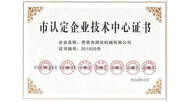 市企業(yè)技術(shù)中心公司已通過了ISO9001質(zhì)量管理認(rèn)證、ISO14001環(huán)境管理體系認(rèn)證和ISO45001職業(yè)健康安全管理體系認(rèn)證。為中國(guó)儲(chǔ)備糧管理總公司糧機(jī)設(shè)備的A級(jí)供應(yīng)商、安徽省高新技術(shù)企業(yè)、擁有阜陽(yáng)市企業(yè)技術(shù)中心。